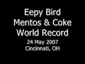 Description: Eepy Bird set the world record for most simultanous mentos & coke explosions. |